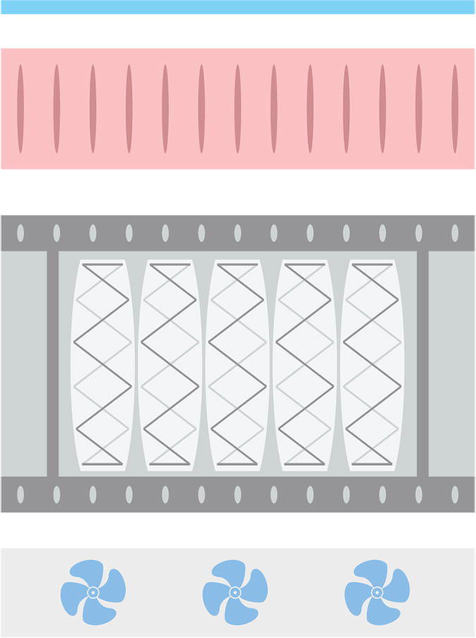 3. Ventilated Flex Comfort Foam increases breathability through larger ventilation channels, allowing airflow to move horizontally for better cooling.